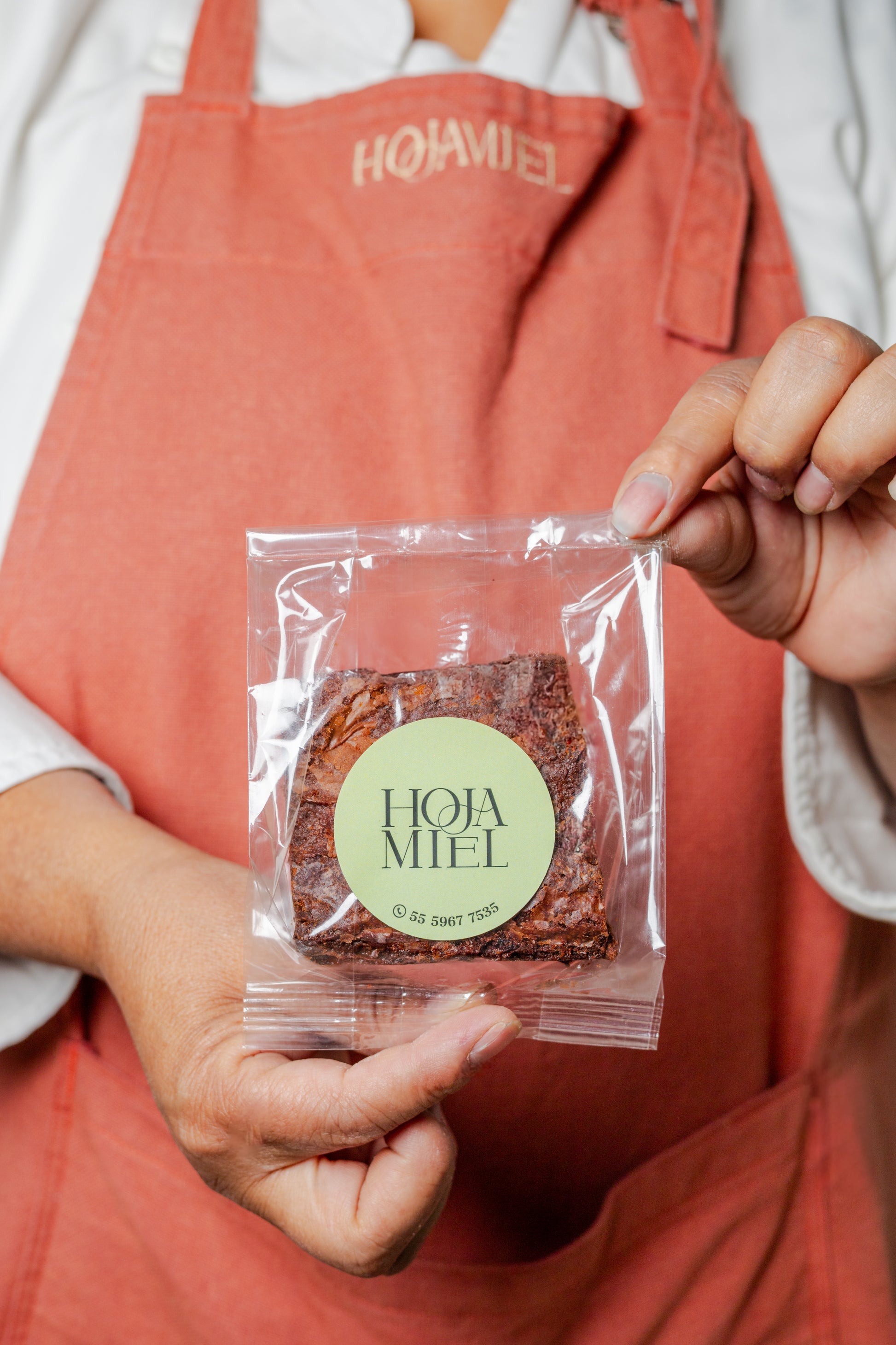 Brownies tradicionales de chocolate espolvoreados con azúcar glass.