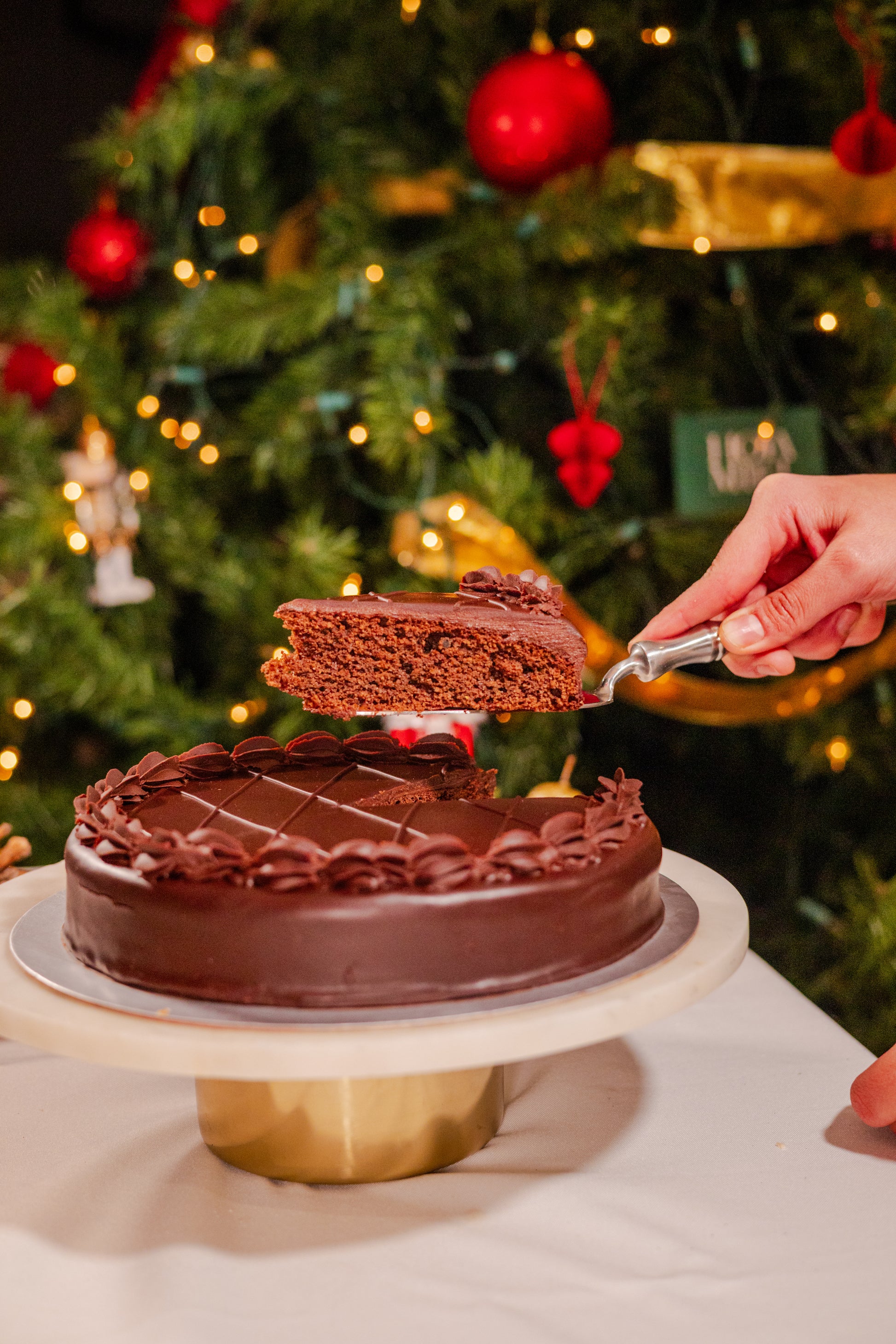 Pastel de harina de almendra, cocoa y endulzado con monk fruit, cubierto de ganache de chocolate sin azúcar endulzado con miel de maple.