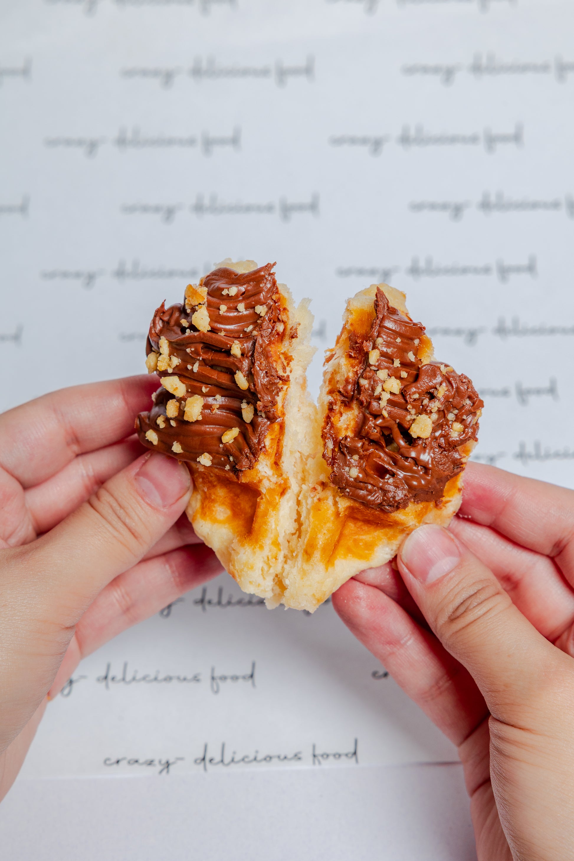 Dulce de leche con nuez caramelizada, nutella con avellana en polvo y crema de galleta lotus.